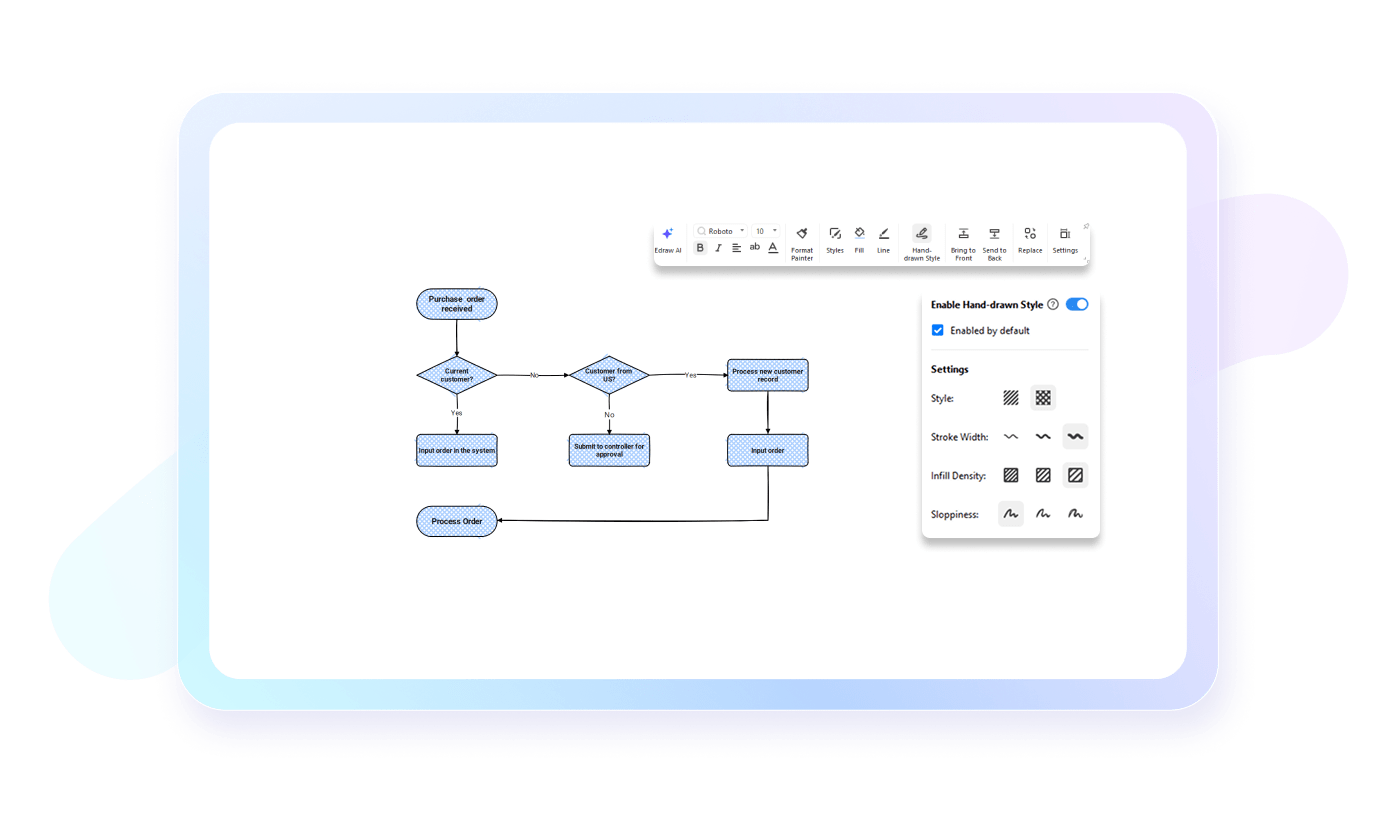 Give your flowcharts a personalized, human touch with EdrawMax’s hand-drawn style. Unlike rigid digital diagrams, this feature: