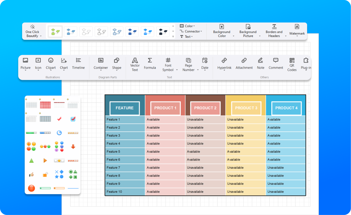 EdrawMax's extensive library of table chart templates is your secret weapon for creating eye-catching, effective tables that impress your audience. From financial reports to scientific research, we've got you covered.