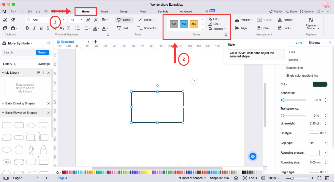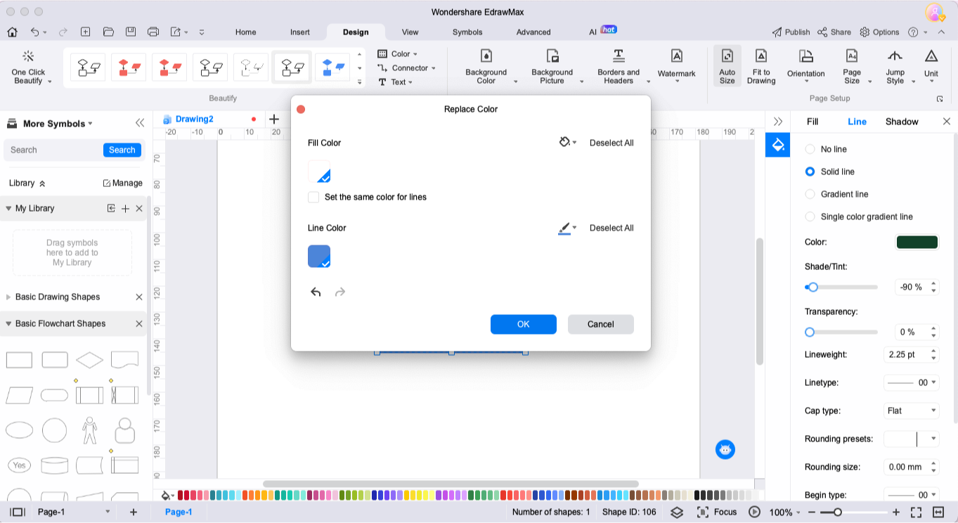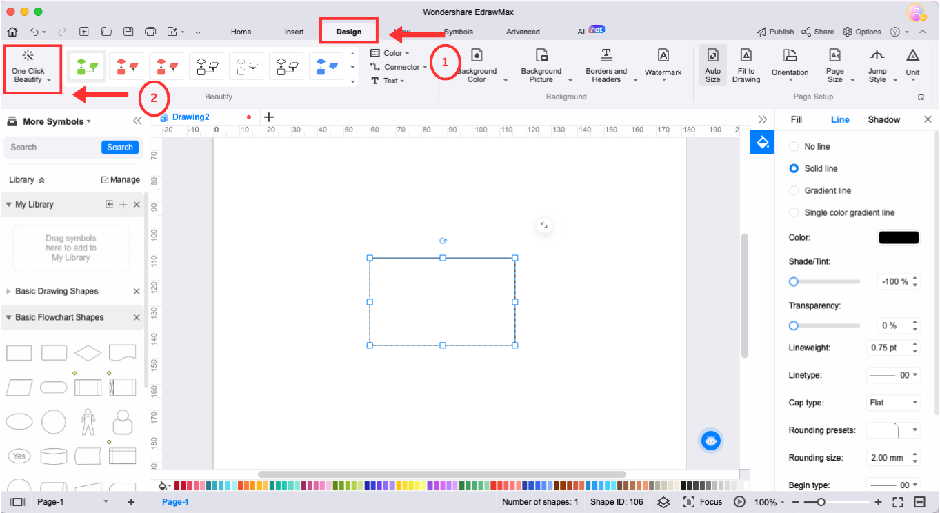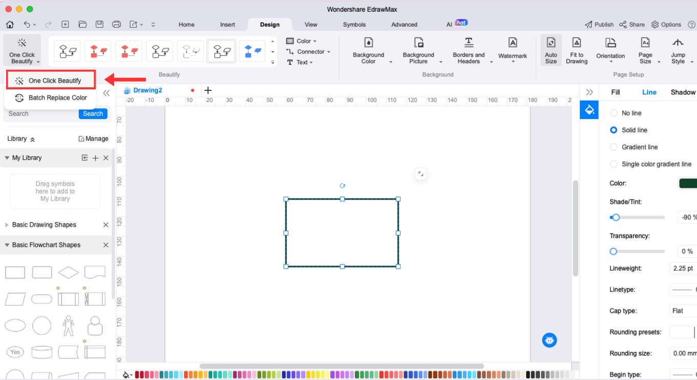 If you want EdrawMax’s algorithm to enhance the beauty of your shape or diagram, click on the One Click Beautify option. The system will automatically change the color and width and even fill the shape with the best suggestion possible.