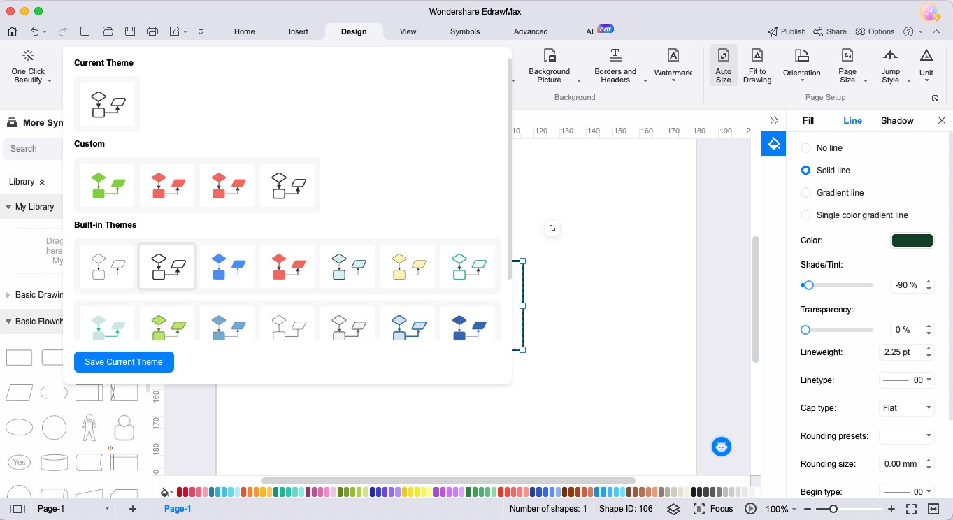 With the latest version of EdrawMax, you can easily change the Theme of your drawing or a particular shape. When you change the theme format on the drawing page, the fonts, colors, connector styles, and other format designs of all the shapes will be changed according to the selected theme.